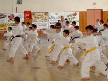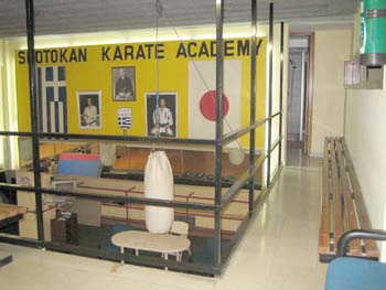 συμμετοχή τους στο σεμινάριο Μαρτίου 2006 του Μασάο Καβαζόε στην Κόρινθο. Κάτω οι ευρύχωροι και ειδικοί χώροι της σχολής για καράτε και αεροβική γυμναστική. |