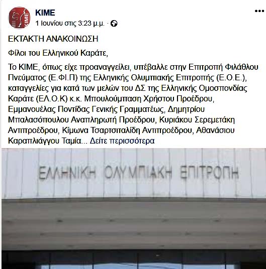 Επειδή, λοιπόν, τα πραγματικά γεγονότα στην πραγματική ζωή τρέχουν καθημερινά για όλους εμάς στον κόσμο του καράτε επηρεάζοντας την καθημερινή μας ζωή και επειδή όλοι οι ανωτέρω είμαστε δημόσια πρόσωπα που διαχειριζόμαστε με το ένα ή τον άλλο τρόπο το δημόσιο αγαθό του πολυπαθούς αυτού αθλήματος, θεωρώ σκόπιμο να πληροφορώ τους ενδιαφερόμενους με τις εξελίξεις, αντίθετα με το ΚΙΜΕ και τους συνοδοιπόρους του που αρέσκονται στην συσκότιση ή/και απόκρυψη κάθε δικαστικής πράξης τους θέλοντας να καλύψουν είτε τα τραγικά τους λάθη είτε το αλισβερίσι τους με τον Αρχι-μαφιόζο Γιώργο Γερόλυμπο και τη συμβία του Εμμανουέλα!