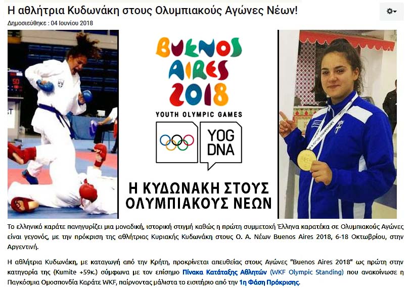 Σήμερα έχουμε 22-6-2018 και το περίφημο Karate News, που κάποτε έγραφε και κανένα ενδιαφερον θέμα, είναι κολλημένο στο γλείψιμο των μετρημένων στα δάχτυλα του ενός χεριού τεσσάρων αθλητών, που πάνε στους Μεσογειακούς Αγώνες! Πού την βλέπει την "Ομαδάρα"?
