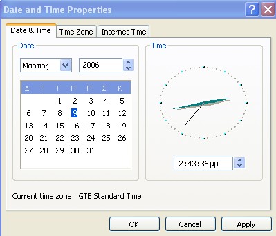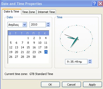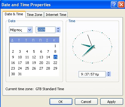 Για παράδειγμα, είναι πασίγνωστο ότι αν κάνω διπλό κλικ πάνω στην ώρα στο κάτω δεξιά άκρο της οθόνης μου, παίρνω το παράθυρο ρύθμισης ημερομηνίας/ώρας της άνω αριστερά εικόνας, που λέει 25 Απριλίου 2010, με τη βοήθεια του οποίου αυτονόητα βάζω όποια ημερομηνία και ώρα θέλω στο ρολόι του υπολογιστή μου και άρα μπορώ να μετατρέψω σε 15 Μαρτίου 2009 (δεξιά εικόνα)! Με ΟΚ η νέα ημερομηνία/ώρα ενσωματώνεται στον υπολογιστή μου! Δουλειά που ξέρουν και μπορούν να την κάνουν και τα μικρά παιδιά! Από τότε κάθε εκτύπωση του εκτυπωτή μου θα εκτυπώνεται με τη νέα ημερομηνία και ώρα του υπολογιστή μου.