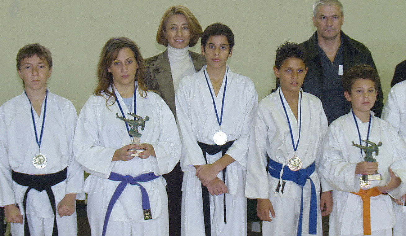 Β) Η ενεργή και “αγκιστρωμένη” θα έλεγε κανείς συμμετοχή της στη διοίκηση της ΠΟΠΚ πιστοποιείται από τη διάθεση του δικηγορικού της γραφείου από 19-9-2005 ως έδρας της ομοσπονδίας, βάσει του από 19-9-2005 Πρακτικού Νο 2 του ΔΣ της ΠΟΠΚ, από την εμφάνιση της σε αγώνες της ΠΟΠΚ τον Οκτώβριο ή Νοέμβριο του 2005 (φώτο αριστερά από περιοδικό του χώρου του καράτε και κάτω δεξιά η μεγέθυνσή της) καθώς και, παρά την παραίτηση της από πρόεδρος της ΠΟΠΚ παρά και την δηλωμένη από τον Οκτώβριο 2005 (και προετοιμασμένη από πολύ νωρίτερα φυσικά) υποψηφιότητα της ως δημάρχου του Παλαιού Ψυχικού στις δημοτικές εκλογές της 15ης 10-2006.