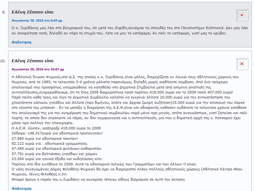 Γ) Από τον Ιούνιο (ή και πολύ νωρίτερα) του 2006 και μέχρι τον Οκτώβριο του 2006, η κα Ελένη Ζέππου-Χαρλαύτη ήταν «σούπερ-καραμπινάτο» Δημόσιο Πρόσωπο, ως επικεφαλής συνδυασμού και υποψήφια δήμαρχος του δήμου Ψυχικού και εκλεγμένη τελικά δημοτική σύμβουλος αυτού!!!