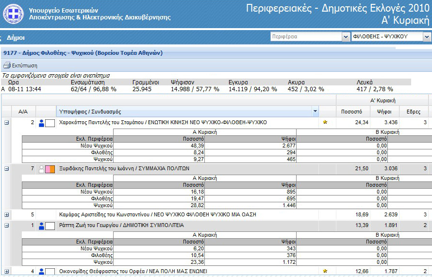 ψάχνω ακόμα) για τον ενοποιημένο δήμο Φιλοθέης-Ψυχικού κατά τις εκλογές του ΝΟΕ