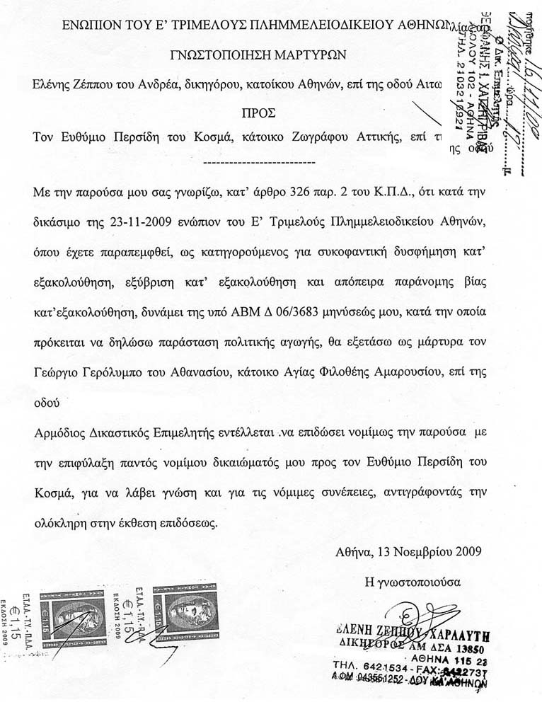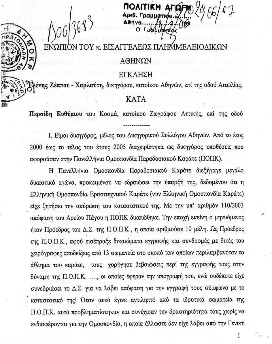 Η από 18/8/06 Μήνυση Ελένης Ζέππου-Χαρλαύτη κατά Περσίδη:
