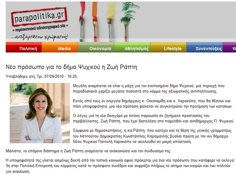 Προσθέτω τη σοβαρή παρατήρηση ότι η κα Ζέππου ήταν δημοτική σύμβουλος του δήμου