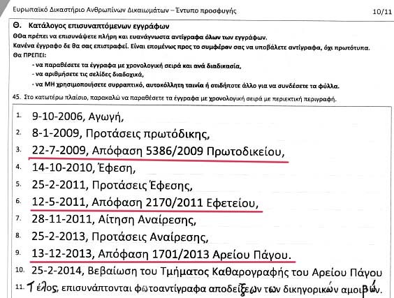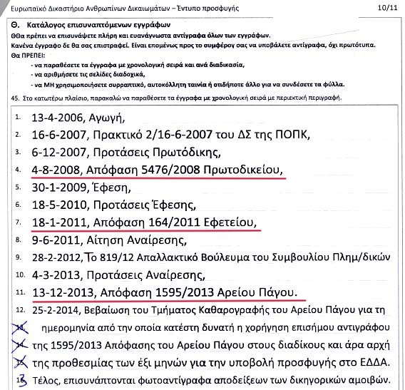 Η Προσφυγή περιλαμβάνει επίσης όλες τις ενδιάμεσες αποφάσεις των εθνικών δικαστηρίων για την υπόθεση.