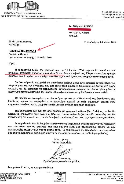 Αποφάσεις ΕΔΔΑ για την από 23/2/2006 Αγωγή Δρακόπουλου κατά Περσίδη και την από 24/7/2006 Αγωγή της Ζέππου-Χαρλαύτη κατά Περσίδη για τις οποίες υποβλήθηκαν δύο Προσφυγές στο ΕΔΔΑ από τον Θύμιο Περσίδη τον Ιούνιο του 2014.