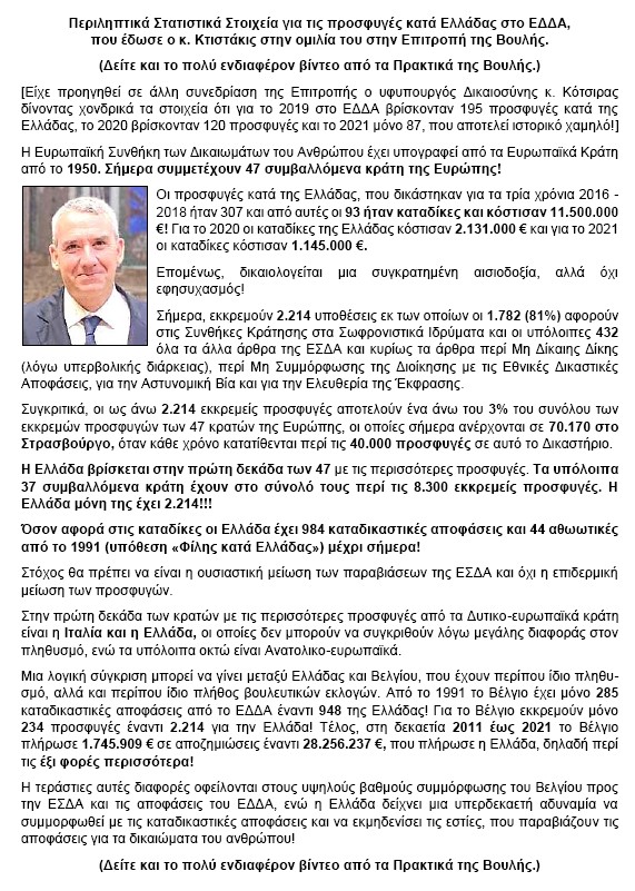 Ενημέρωση από τον Έλληνα Δικαστή του ΕΔΔΑ κ. Ιωάννη Κτιστάκι