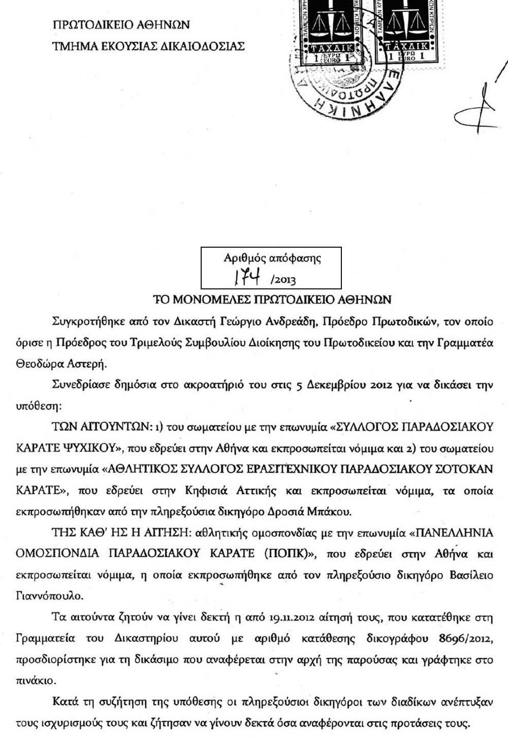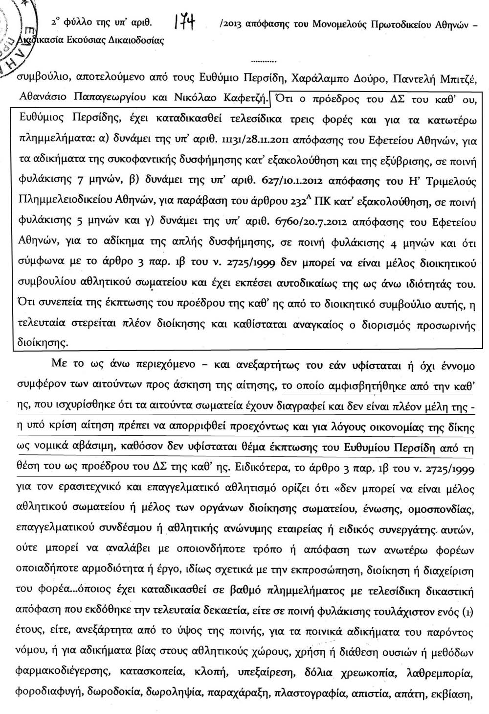 Απόφαση 174/17-1-2013 στην Αίτηση των Δρακόπουλου-Προκοπίου και
