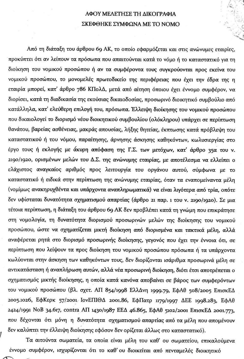 Κατά τη συζήτηση της Αίτησης του Δρακόπουλου για προσωρινή διοίκηση στην ΠΟΠΚ κατατέθηκαν:
