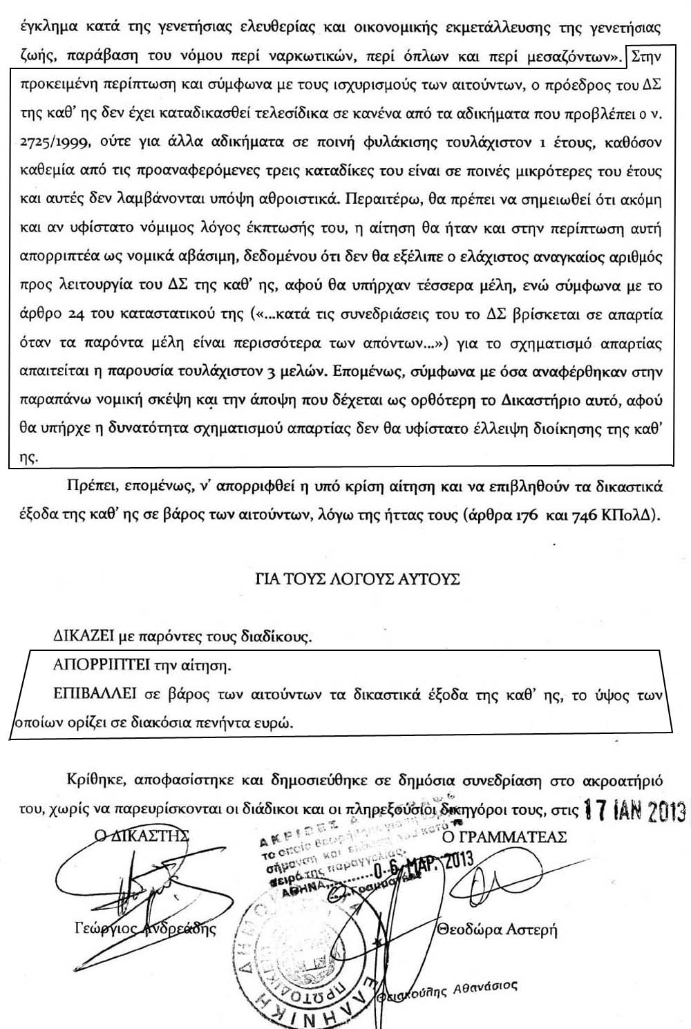 Η Απόφαση του Δικαστηρίου δίνεται κατωτέρω και εδώ με κλικ σε εκτυπώσιμη μορφή!