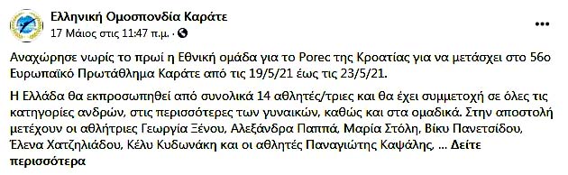 17/5/21 - Φωτογραφία από την αποστολή στο Πανευρωπαϊκό και το σχετικό Σχόλιο του karate.gr!