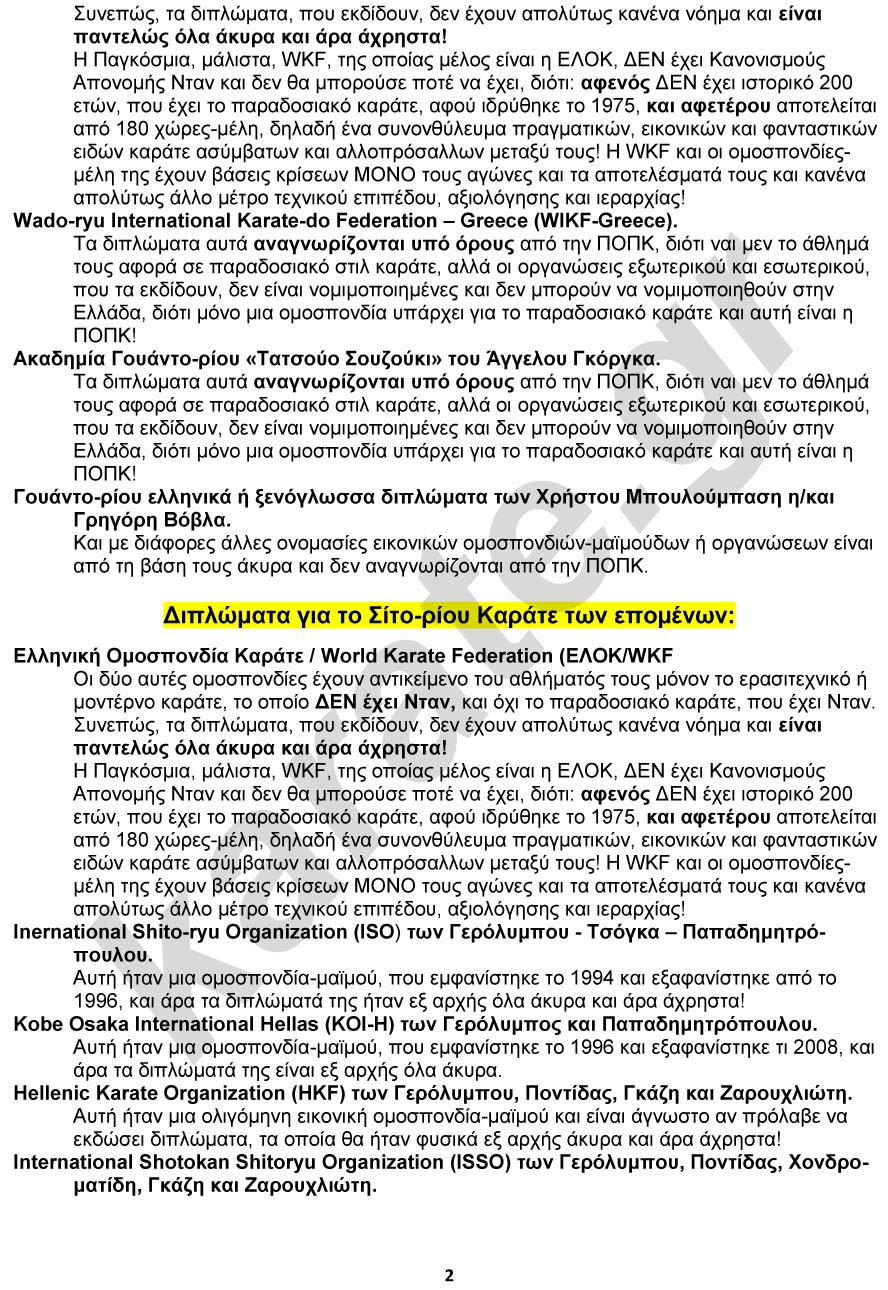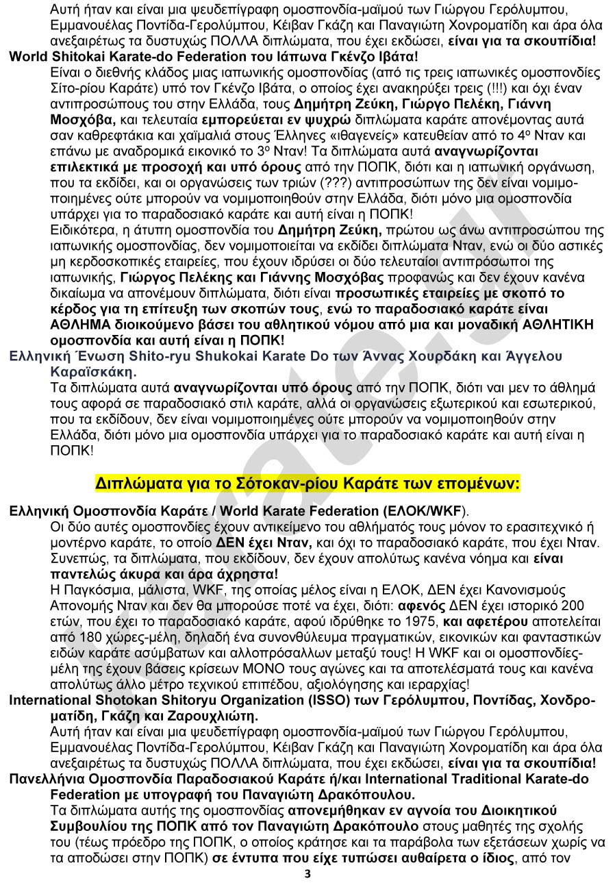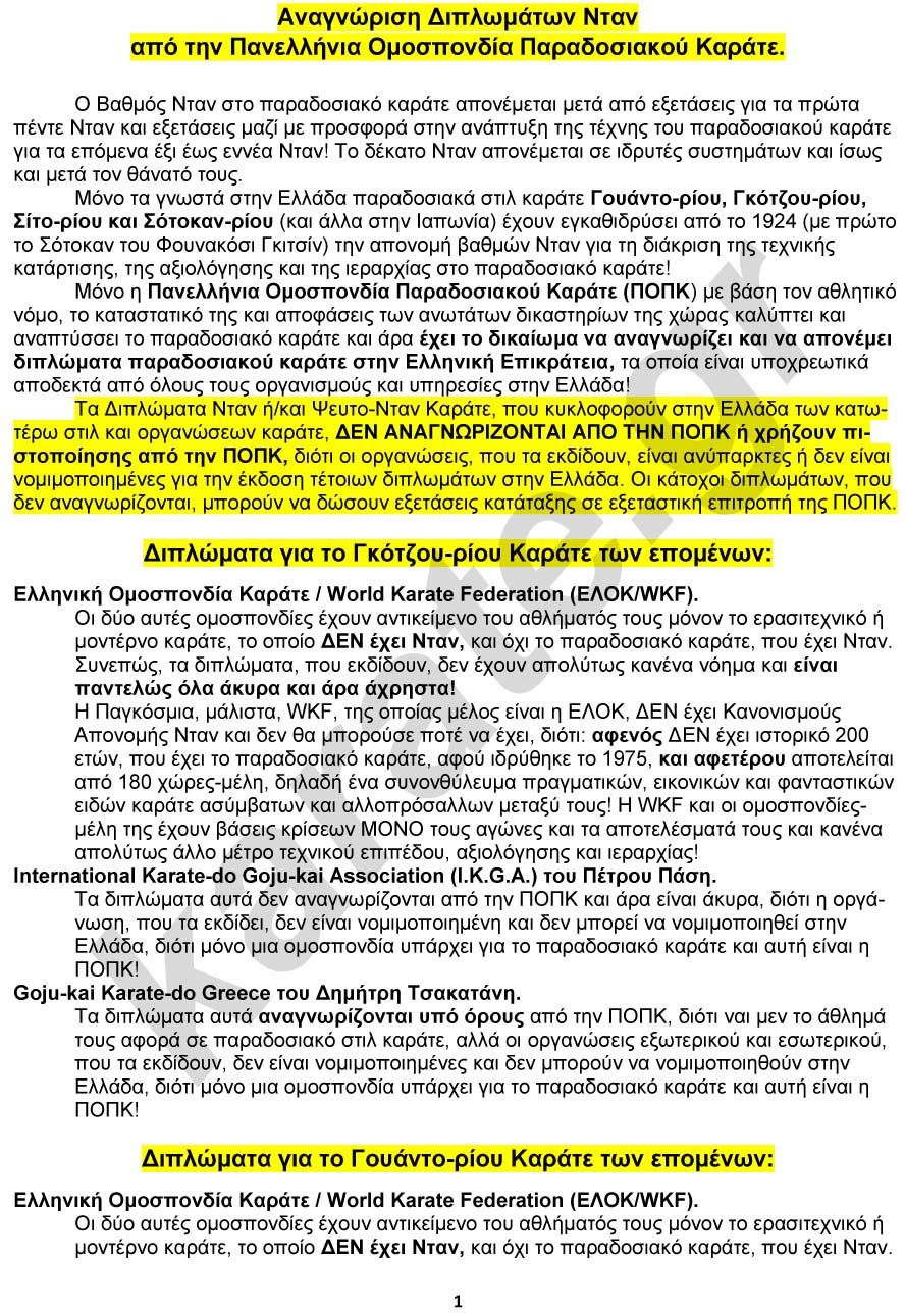 Όλα τα διπλώματα Νταν στα παραδοσιακά στιλ στην Ελλάδα είναι άκυρα αν δεν έχουν πιστοποιηθεί ή απονεμηθεί από την ΠΟΠΚ! Διαβάστε τα επόμενα τέσσερα άρθρα!