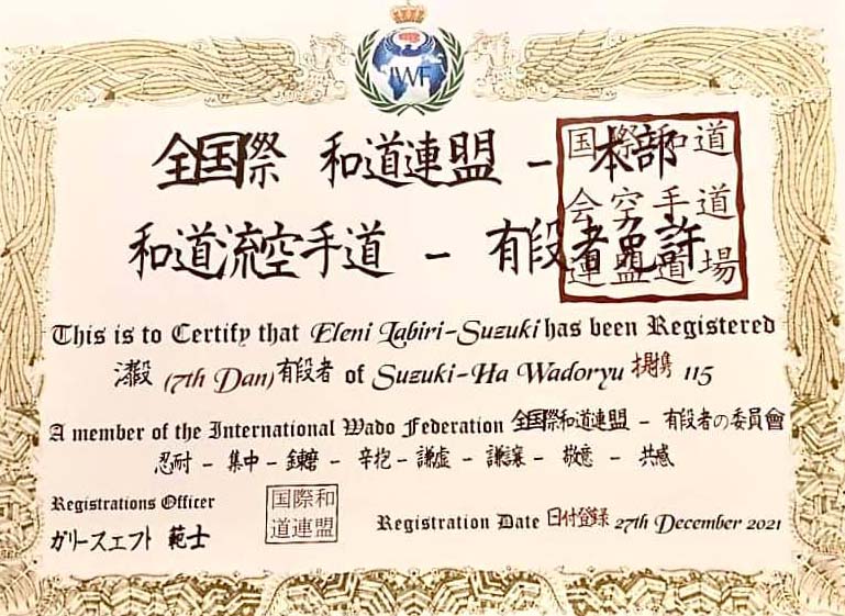 Η WSKF δίνει διπλώματα Νταν με συγκεκριμένη ημερομηνία και αύξοντα αριθμό για το κάθε Νταν στη χώρα Ελλάδα, στα οποία παρατηρούμε στον δεξί πίνακα:
