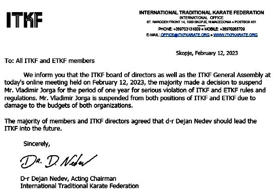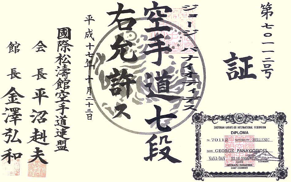 Τα διπλώματα Νταν στο καράτε θα πρέπει προφανώς να υποστηρίζονται από έναν αξιόπιστο, ζωντανό και σε λειτουργία οργανισμό, η έλλειψη του οποίου καθιστά αυτομάτως τα διπλώματα, που εξέδωσε στο παρελθόν, τελείως άχρηστα, διότι δεν επιβεβαιώνεται η βέβαιη αξιοπιστία τους!.