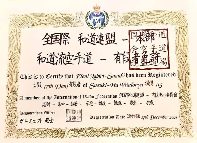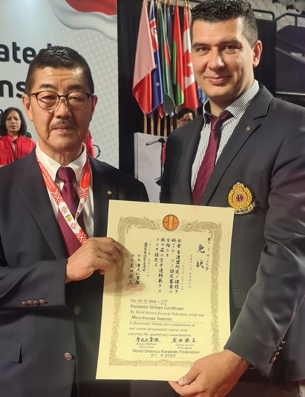Τέλος, στους Παγκόσμιους της WSKF στην Τζακάρτα, 22-24/2/2023, ο Γιάννης Μοσχόβας πήρε μέρος ΣΑΝ ΑΘΛΗΤΗΣ στα Κάτα και γύρισε πίσω μαζί με το δίπλωμα του "Σιχάν" (δασκάλου με τη ... βούλα!) από τον Γκένζο Ιβάτα! (Φωτό)