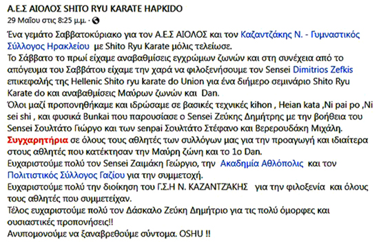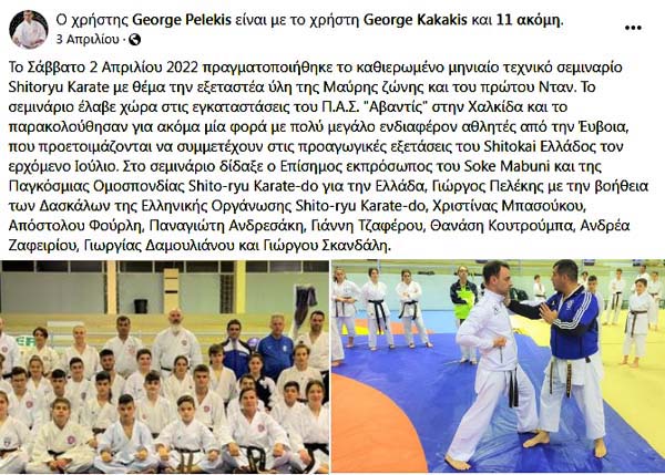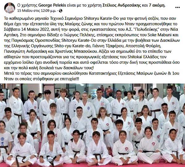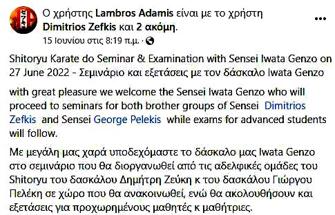 Ακολουθούν οι γελοίες, υποκριτικές και εσπευσμένες ανακοινώσεις των Ζεύκη και Πελέκη για τη συμμετοχή τους στα σεμινάρια και εξετάσεις του Γκένζο Ιβάτα την 15η/6/2022 και 16η/6/2022 στο λογαριασμό Facebook του Ζεύκη και στο site dynamicsports.gr, αμέσως μόλις βρέθηκαν στο αδιέξοδο μετά τον αιφνίδιο θάνατο του Κώστα Κάσση την 7/6/2022! Ούτε τον εκλιπόντα δεν σεβάστηκαν!