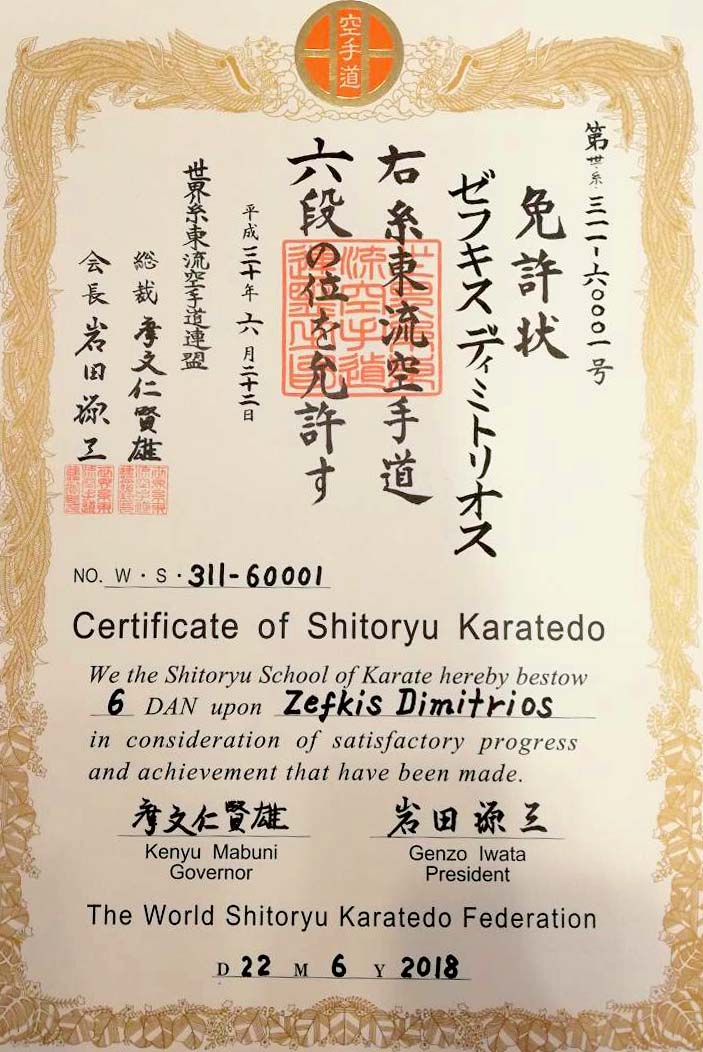 Τελικά, όμως, το έκτο Νταν από την WSKF του Ιβάτα το πήρε, αφού το πλήρωσε στον επιχειρηματία Γιαπωνέζο, την 14/3/2019, δηλαδή 20 μήνες μετά από τις εξετάσεις στον εαυτό του, τις οποίες ο Ιάπωνας φυσικά τις αγνόησε! Αλλά με δεδομένο ότι το πέμπτο Νταν το είχε πάρει ο Μοσχόβας το 2015, θα κάνουμε και την παρατήρηση ότι ο επιχειρηματίας Γκένζο Ιβάτα δίνει τα έκτα Νταν στα τέσσερα χρόνια και όχι στα έξι, που είναι κανόνας για τα παραδοσιακά στιλ καράτε! Μετά από όλα αυτά: