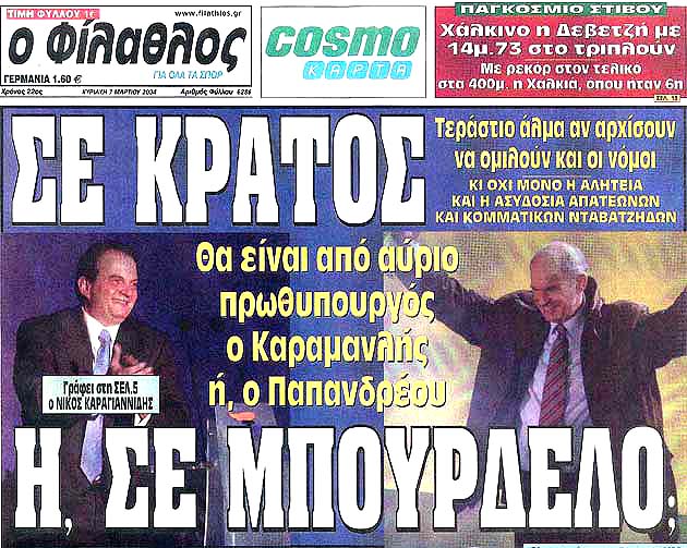 Το Επικό Εξώφυλλο της εφημερίδας "Ο ΦΙΛΑΘΛΟΣ" της 7ης Μαρτίου 2004!!!