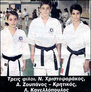 Τρεις φίλοι, από τους πρωταγωνιστές του φετινού πρωταθλήματος, ο Νίκος Χριστοφοράκος, πρωταθλητής στις μαύρες ζώνες Κούμιτε έως 14 ετών, Ο Ανδρέας Ζουμπάνος-Κρητικός, δεύτερος στην ίδια κατηγορία, ο Λεωνίδας Κανελλόπουλος, πρωταθλητής στα Κάτα μαύρων ζωνών έως 14 ετών, όλοι τους αθλητές του Συλλόγου ??? και ο Αλέξανδρος Λέτσας που έχει μπλε ζώνη μας εξήγησαν: