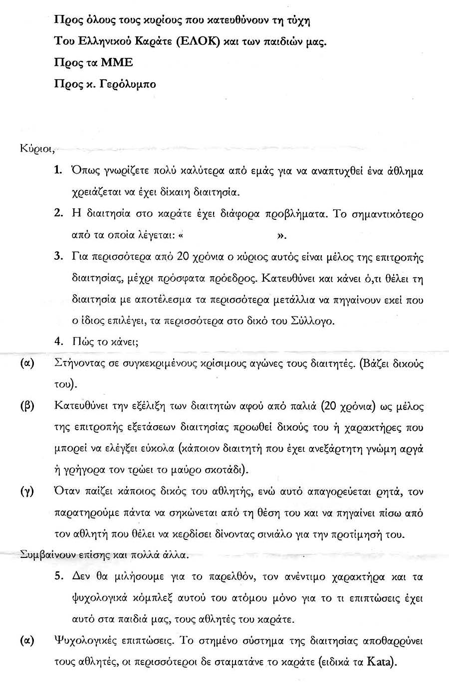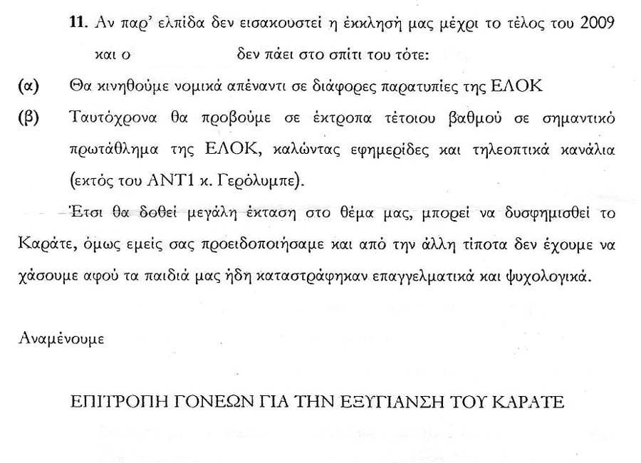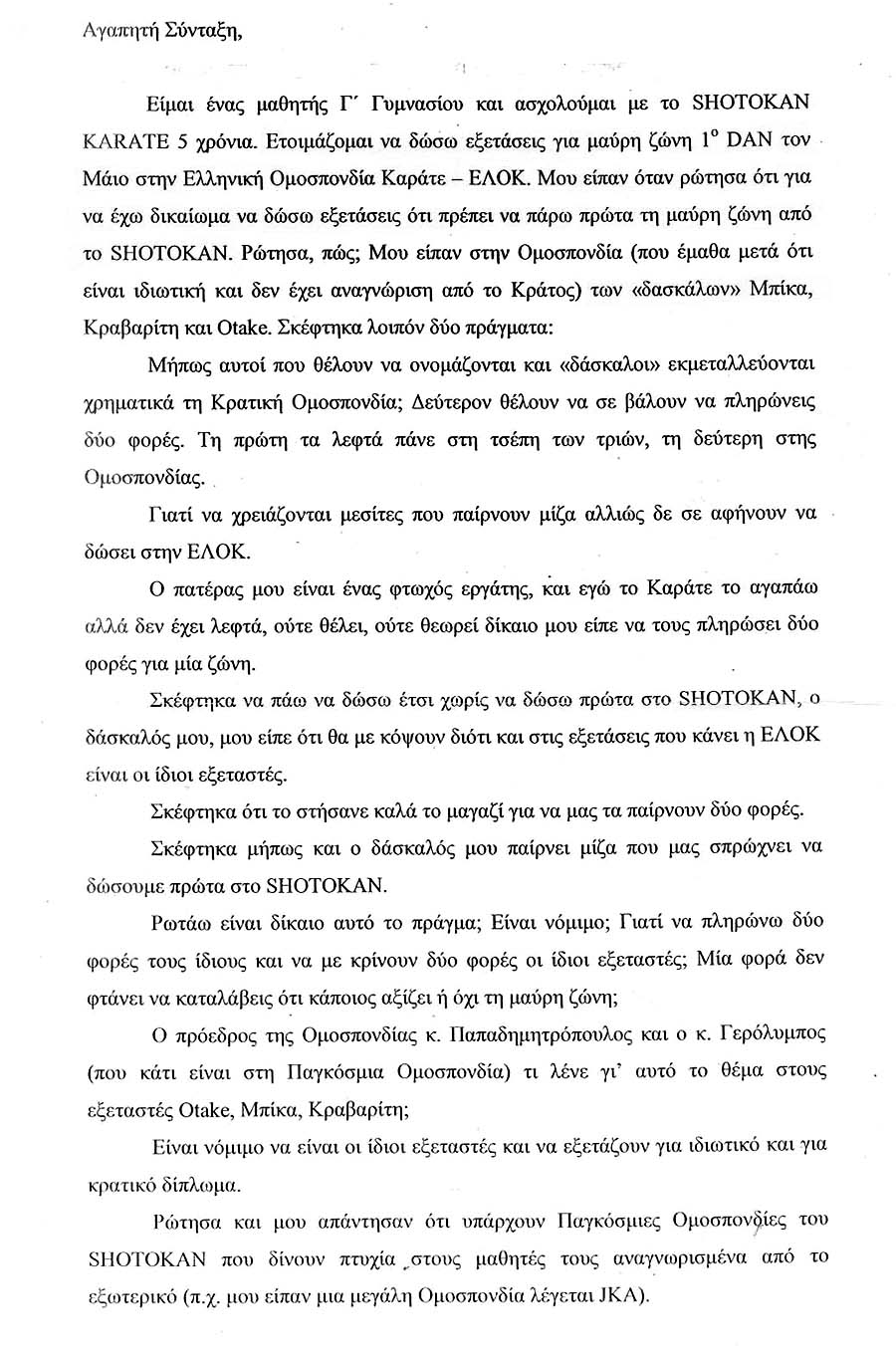 Χωρίς καμιά επέμβαση δική  μου, σας δίνω επιστολές, που ήρθαν στο karate.gr, από και προς την ΕΛΟΚ, οι οποίες αποδεικνύουν τη στυγνή εκμετάλλευση της ομοσπονδίας αυτής για τα προσωπικά συμφέροντα των επιτηδείων που την διοικούν.