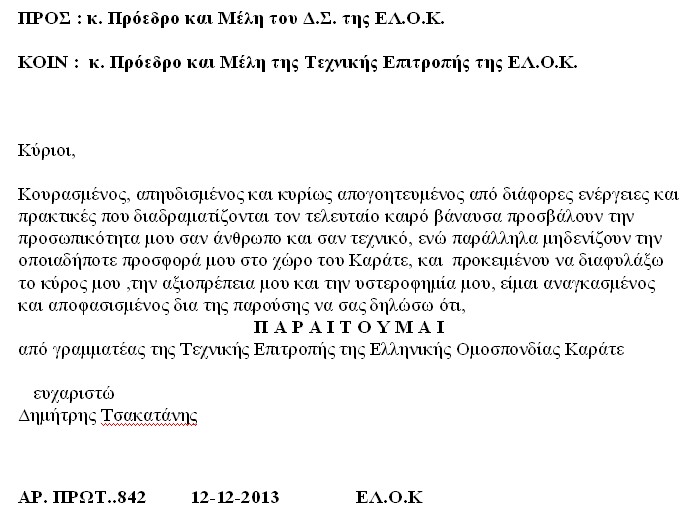 13-12-2013.β - Οι πληροφορίες λένε ότι παραιτήθηκε και ο γραμματέας της Τεχνικής Επιτροπής της ΕΛΟΚ Δημήτρης Τσακατάνης!!!