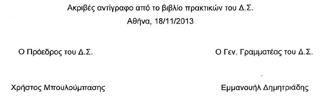 18-11-2013 - Από το Πρακτικό του ΔΣ/ΕΛΟΚ: