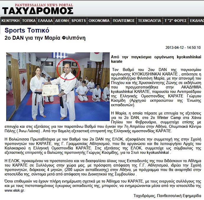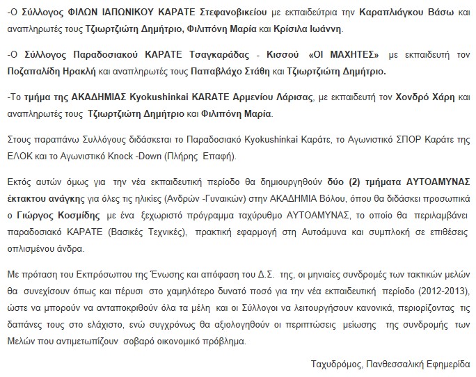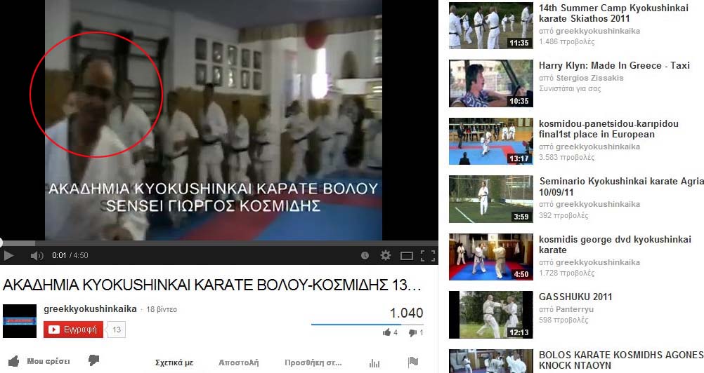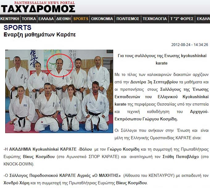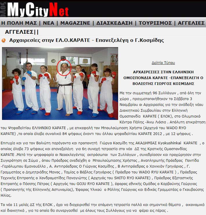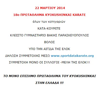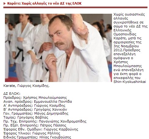 Κάτω: Υπό την αιγίδα της ΕΛΟΚ το πρωτάθλημα του Κυόκουσιν Καράτε, στο οποίο αρχηγός είναι ο Γιώργος Κοσμίδης, δηλαδή του στέλνει και πελάτες!!!
