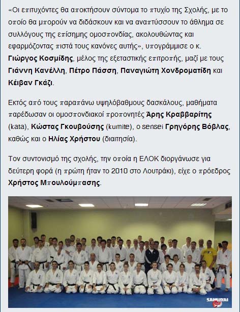 Η τελευταία φωτογραφία μεγεθύνεται εδώ και διακρίνονται επίσης οι Πέτρος Πάσης και Γιώργος Κοσμίδης, οι οποίοι στην είδηση του έγκριτου "Σαμουράι24" δηλώνονται ως Εκπαιδευτές της Σχολής Προπονητών και Εξεταστές!