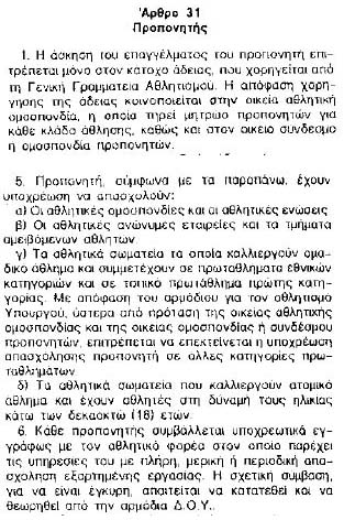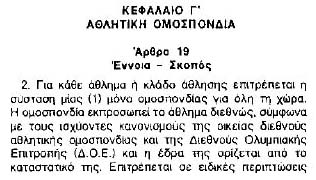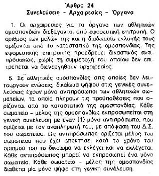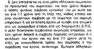 Το αριστερά Άρθρο 3, παρ. 2 και 3 αναφέρεται στα κωλύματα για τις θέσεις διοίκησης σε "ομαδικά" και "ατομικά" αθλήματα.