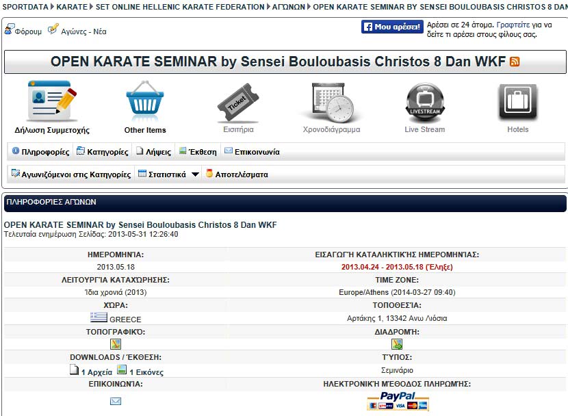 Αρχικά οι μέχρι σήμερα γενικές δημοσιεύσεις όλων των αγώνων και σεμιναρίων της ΕΛΟΚ.Τα έσοδα των αγώνων της ΕΛΟΚ λογικά πρέπει να πήγαν στο Ταμείο της ΕΛΟΚ, πράγμα βέβαια που θέλει έλεγχο!