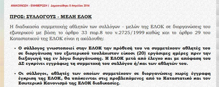 ΓΙΑΤΙ ΑΝ ΣΥΜΜΕΤΕΙΧΑΝ ΧΩΡΙΣ ΝΑ ΠΑΡΟΥΝ ΤΙΣ ΑΠΑΙΤΟΥΜΕΝΕΣ ΑΔΕΙΕΣ ΑΠΟ ΕΛΟΚ ΚΑΙ ΓΓΑ ΚΑΙ ΤΙΜΩΡΗΘΟΥΝ, ΟΠΩΣ ΚΑΝΟΝΙΚΑ ΠΡΕΠΕΙ ΝΑ ΓΙΝΕΙ, ΔΕΝ ΘΑ ΕΧΟΥΝ ΔΙΚΑΙΩΜΑ ΝΑ ΣΥΜΜΕΤΕΧΟΥΝ ΣΕ ΔΙΟΡΓΑΝΩΣΕΙΣ ΤΗΣ ΕΛΛΗΝΙΚΗΣ ΟΜΟΣΠΟΝΔΙΑΣ ΚΑΡΑΤΕ ΜΕ ΑΠΟΤΕΛΕΣΜΑ ΝΑ ΜΗΝ ΜΠΟΡΟΥΝ ΚΑΠΟΙΟΙ ΠΟΛΥ ΚΑΛΟΙ ΑΘΛΗΤΕΣ ΝΑ ΠΑΡΟΥΝ ΤΑ ΜΟΡΙΑ ΓΙΑ ΤΙΣ ΣΧΟΛΕΣ ΠΟΥ ΕΠΕΛΕΞΑΝ.