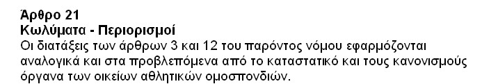 β) Ταυτόχρονα, αυτό το Αρχι-Καραλαμόγιο ο Γερόλυμπος είναι και Πρόεδρος της Ομοσπονδίας του Τριάθλου (δεξιά), ενώ από το ΝΟΜΟ 2725/ 1999: β1) στο Άρθρο 12 παρ. 2, δεξιά, για τα Κωλύματα και τους Περιορισμούς όσον αφορά στη συμμετοχή φυσικού προσώπου στις αθλητικές ενώσεις ορίζεται: "Δεν επιτρέπεται να εκλεγεί στο Δ.Σ. ή σε άλλο από το καταστατικό προβλεπόμενο όργανο αθλητικής ένωσης υποψήφιος, εφόσον: α) είναι μέλος του διοικητικού συμβουλίου άλλης αθλητικής ένωσης," κτλ. όπου προφανώς ως "όργανα" νοούνται είτε "επιτροπές" είτε "φυσικά πρόσωπα" αρκεί να εργάζονται για την ένωση, πράγμα που σημαίνει ότι η θέση ενός "αντιπροσώπου" είναι προφανέστατα και αυτονόητα "θέση οργάνου" της ένωσης, αφού και εφόσον αυτός ο αντιπρόσωπος έχει αναλάβει καταστατική εργασία για αυτήν!!! β2) Επίσης, στο Άρθρο 21, δεξιά, ορίζεται: "Οι διατάξεις των άρθρων 3 και 12 του παρόντος νόμου εφαρμόζονται αναλογικά και στα προβλεπόμενα από το καταστατικό και τους κανονισμούς στα όργανα των οικείων αθλητικών ομοσπονδιών". Άρα ότι ισχύει για τις αθλητικές ενώσεις, ισχύει και για τις αθλητικές ομοσπονδίες, οι οποίες είναι υπερκείμενα των ενώσεων σωματεία. Και προφανώς, ο νόμος επεκτείνεται και στα υπερκείμενα των ομοσπονδιών σωματεία, που για την ΕΛΟΚ είναι η Ευρωπαϊκή και η Παγκόσμια!!! γ) Αφετέρου, από το καταστατικό της ΕΛΟΚ, δεξιά Άρθρο 3-ΣΚΟΠΟΣ, ορίζεται ότι στους Σκοπούς της υπάγονται και τα επόμενα α), β), κτλ. μεταξύ των οποίων περιλαμβάνεται και η υποψηφιότητα για συμμετοχή ΜΕΛΟΥΣ της ΕΛΟΚ στα διοικητικά όργανα της Παγκόσμιας, όπου προφανώς ως "όργανα" νοούνται είτε "επιτροπές" είτε "φυσικά πρόσωπα"!!! Εκ των ανωτέρω (α), (β) και (γ) είναι προφανέστατο ότι "όργανο" της ΕΛΟΚ είναι το ΔΣ αυτής, αλλά και "κάθε φυσικό πρόσωπο" που είναι μέλος αυτού του ΔΣ της ΕΛΟΚ ή προσφέρει οποιαδήποτε καταστατική υπηρεσία στην ΕΛΟΚ!!! Συνεπώς, ένας "αντιπρόσωπος" της ΕΛΟΚ οπουδήποτε είναι αυτονόητα "όργανο" της ΕΛΟΚ! Δηλαδή ο αντιπρόσωπος της ΕΛΟΚ στην WKF είναι "όργανο της ΕΛΟΚ". Συνεπώς, ο Γιώργος Γερόλυμπος ως ενεργός Πρόεδρος της Ομο-σπονδίας του Τριάθλου ΑΠΑΓΟΡΕΥΕΤΑΙ ΝΑ ΕΙΝΑΙ ΑΝΤΙΠΡΟΣΩ-ΠΟΣ, δηλαδή "όργανο" της Ομοσπονδίας του Καράτε, σε όργανα υπερκείμενης αθλητικής ομοσπονδίας, δηλαδή της WKF!!! Τι ΔΕΝ καταλαβαίνετε??? Έχω σκάσει να τα λεω είκοσι χρόνια!!! ######################################################################### |