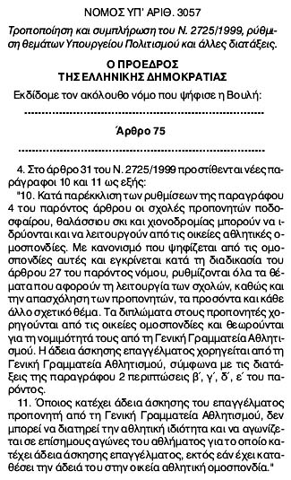 ![]() Δεύτερη Καραμπινάτη Παρανομία: Στην ανακοίνωση της ΕΛΟΚ τονίζεται προκλητικά ότι ως Εθνικός Προπονητής και Αρχηγός αποστολής ορίσθηκε ο Κώστας Γκουβούσης, ο οποίος ΔΕΝ έχει καν δίπλωμα εμπειρικού προπονητή, όπως ορίζει ο ΝΟΜΟΣ 2725/1999 στο άρθρο 31, δεξιά. Τι κάνει η ΓΓΑ γι' αυτό? |