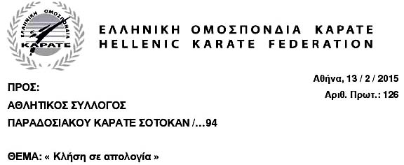 Επίσημη Μετάφραση: ΕΛΛΗΝΙΚΗ ΟΜΟΣΠΟΝΔΙΑ ΚΑΡΑΤΕ