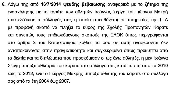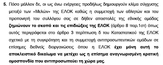 5) Αν υπάρχει «επανειλημμένη συμμετοχή αθλητών και του προπονητή του συλλόγου» σαν άτομα, αφού ο σύλλογος ΔΕΝ αναφέρεται σε κανένα έγγραφο συμμετοχής, και αυτά είναι παράνομα τότε η ΕΛΟΚ να απευθυνθεί στους αθλητές και στον προπονητή και όχι στον σύλλογο!