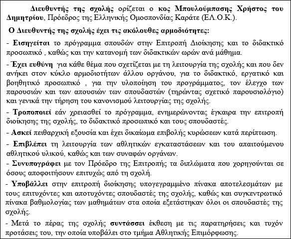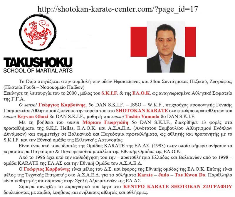 Áðü ôïí Èýìéï Ðåñóßäç, Åê ôùí Éäñõôþí ôçò ÅËÏÊ, ôÝùò Ãåí. ÃñáììáôÝá, Ðñüåäñï êáé Åðßô. Ðñüåäñï! ÄéåõèõíôÞ ôçò Ðñþôçò Ó÷ïëÞò Ðñïðïíçôþí 1992 ôùí ÅËÏÊ/ÃÃÁ!!! ÉäéïêôÞôç êáé äéá÷åéñéóôÞ ôïõ www.karate.gr.