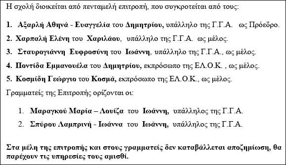 Ôá ÐñáêôéêÜ êáé ôï Ðüñéóìá ôçò ÅðéôñïðÞò Äéïßêçóçò ôçò Ó÷ïëÞò