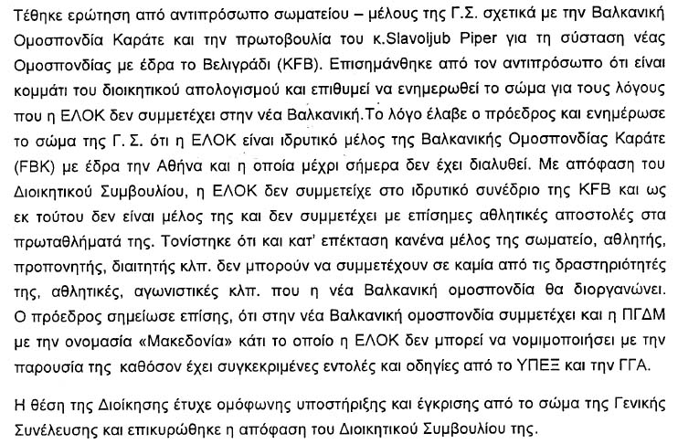 Σε αυτό ακριβώς το σημείο παραθέτω την ήδη δημοσιευμένη από το karate.gr επιστολή της ΕΛΟΚ προς την Νέα Βαλκανική με την παράκληση να γίνει μέλος της: