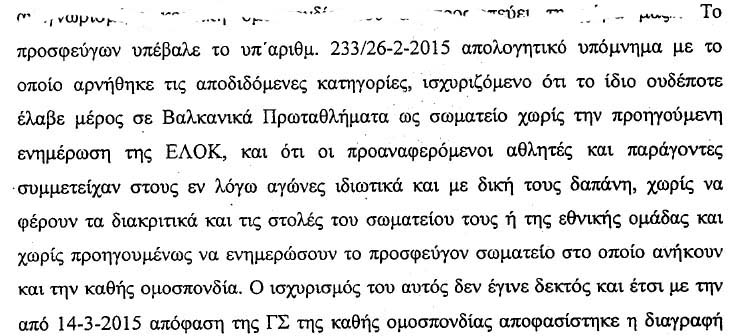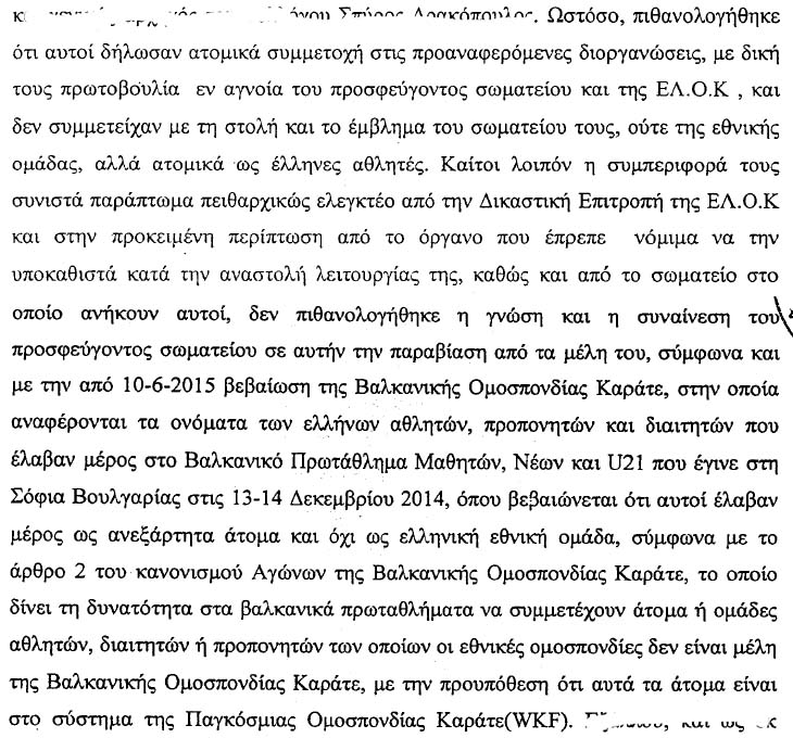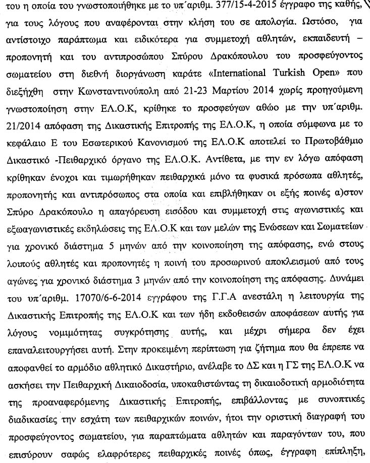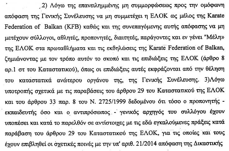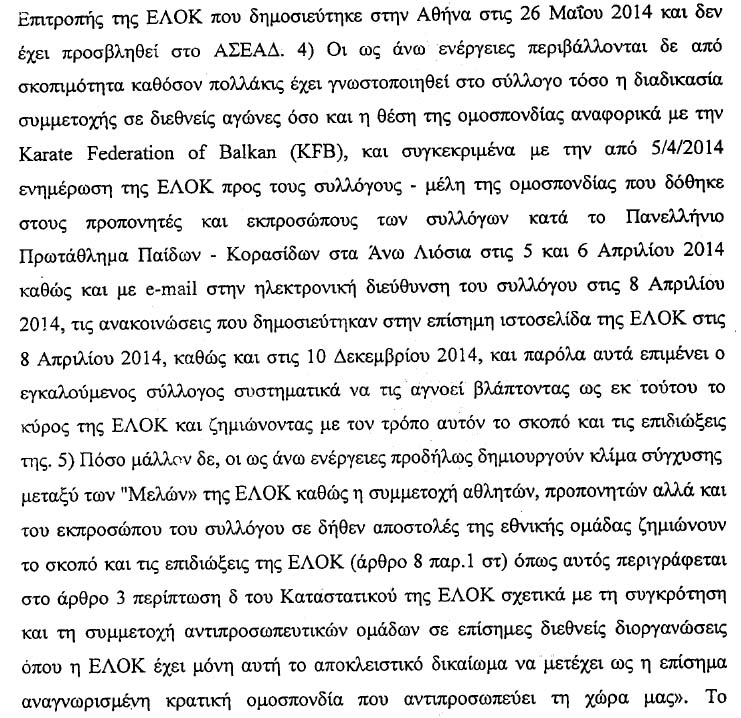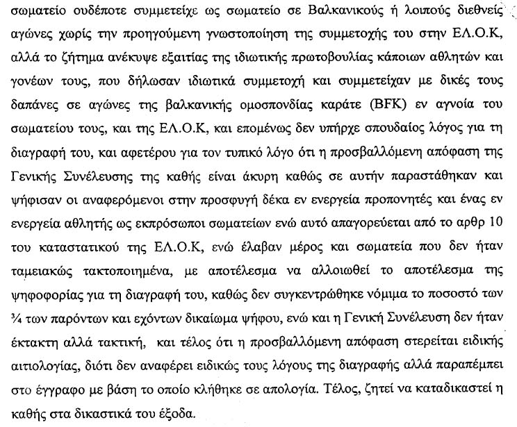 Αναφέρονται ανωτέρω οι ισχυρισμοί της ΕΛΟΚ που επιφέρουν την διαγραφή του συλλόγου! Οι ισχυρισμοί αυτοί συνεχίζονται και στα επόμενα ....