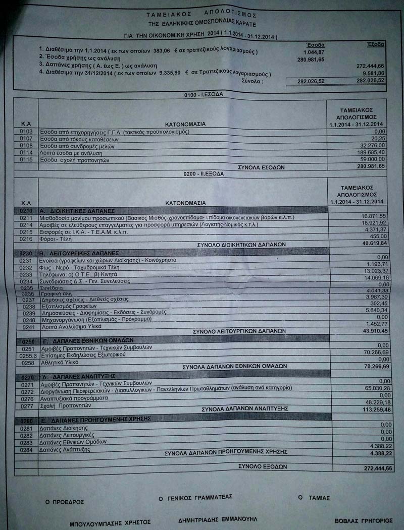 Ο απολογισμός του 2014 για την έγκριση του οποίου συγκλήθηκε αυτή η τακτική ΓΣ