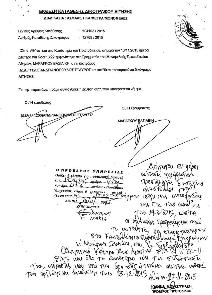 έχουμε μηνύσεις κατά των 37, της ΕΛΟΚ και του Συναδινού για πλαστογραφίες και