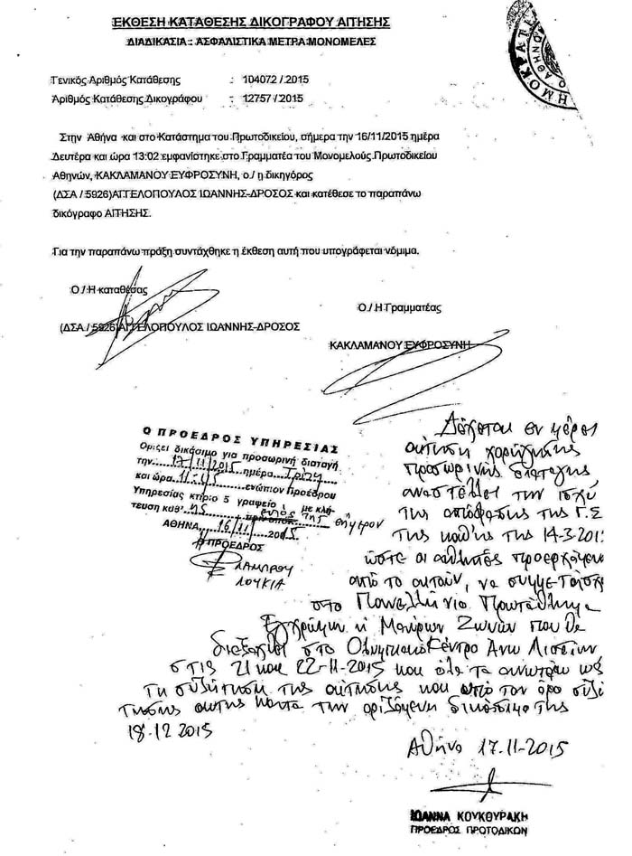 Ανδριανόπουλου και Δρόσου Αγγελόπουλου στο δικαστήριο με Ασφαλιστικά Μέτρα
