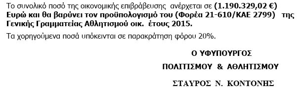 ανάπτυξης στον Αθλητισμό, ενώ θα έπρεπε στις σημερινές δύσκολες οικονομικές