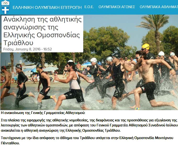 Η Ανάκληση της Αθλητικής Αναγνώρισης του Τριάθλου αναρτήθηκε και στο site της ΕΟΕ: