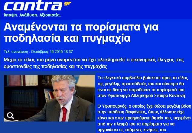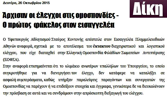Από τον Ιούνιο του 2015 είχε ανακοινώσει ο υφυπουργός Σταύρος Κοντονής μαζί με τον Γενικό Γραμματέα Αθλητισμού Ιούλιο Συναδινό την επάνοδο των διαχειριστικών και οικονομικών ελέγχων στις αθλητικές ομοσπονδίες (βλέπετε τις δημοσιεύσεις). Ε, από την ανακοίνωση μέχρι την πραγματοποίηση λέμε να περάσει ένα εύλογο χρονικό διάστημα, αλλά όχι και τόοοσο μεγάααλο!