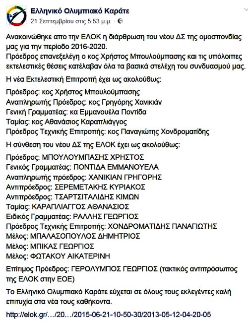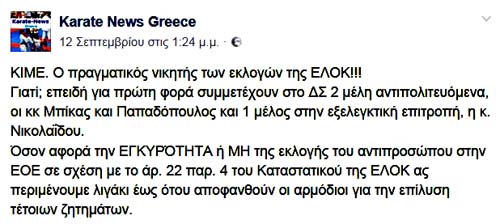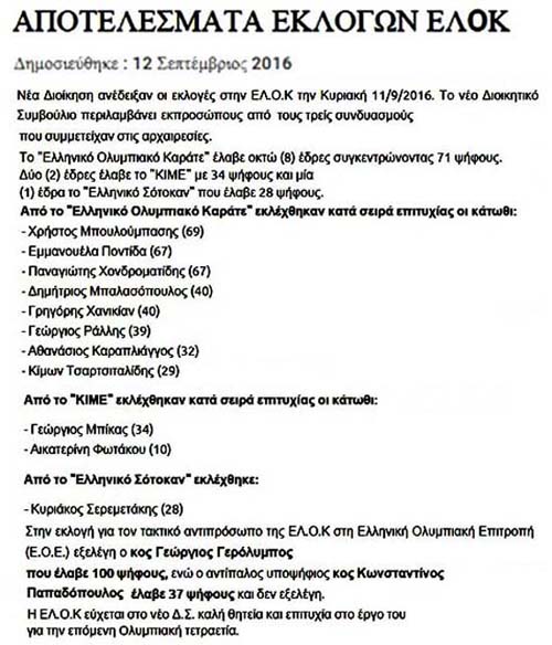 12/9/2016 - Ακολούθησε το Karate News μετρώντας σαν δεύτερο μέλος του ΚΙΜΕ στο ΔΣ τον Παπαδόπουλο και όχι την Φωτάκου, όπως γράφει το Πρωτόκολλο Ψηφοφορίας!
