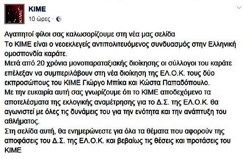 23/9/2016 - Νάτο πάλι το ΚΙΜΕ να εύχεται σε όλους τους νεοεκλεγέντες του ΔΣ "καλή επιτυχία"! Δεν βλέπω τον Παπαδόπουλο, ρε Μπίκα, που τον είχες δεδομένο!!! Τι έγινε? Επίσης Εσύ παζάρευες για πέντε θέσεις στο ΔΣ με εσένα Πρόεδρο και πήρες΄το ένα ξεροκόμματο της μιας θέσης για εσένα μόνο, διότι η δικηγόρος Αικατερίνη Φωτάκου από τη Σκάλα Λακωνίας δεν πρόκειται να έρχεται στις βλακείες που λέτε στο ΔΣ της ΕΛΟΚ!!!
