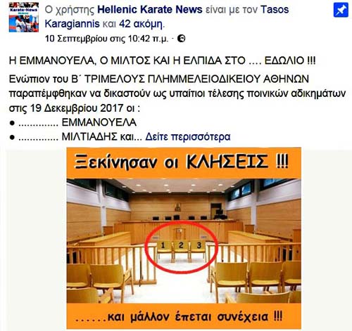 Στο μεταξύ ο Γερόλυμπος την 2-7-2017 έγραψε στο υβριστικό και κλεμμένο facebook/karate.gr το κείμενο με κλικ εδώ και απαντήσεις στα κυριότερα στη συνέχεια: