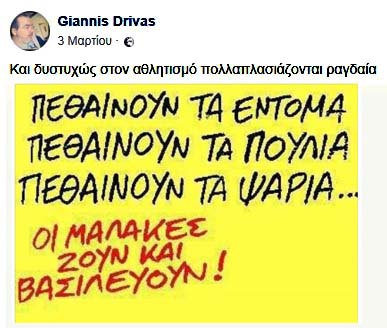 Και όπως έγραφε στο λογαριασμό του ο "μέγας αμπελοφιλόσοφος" και κολλητός του Ιούλιου Συναδινού Γιάννης Δρίβας πριν γίνουν "πετυχημένη" κυβέρνηση: